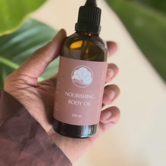 Deze zijdezachte Nourishing Body Oil is samengesteld om je huid intens te voeden, te verzachten en tot rust te brengen. De basis van zoete amandelolie verzorgt de huid diep, verbetert de elasticiteit en laat een natuurlijke glow achter zonder vet aan te voelen.