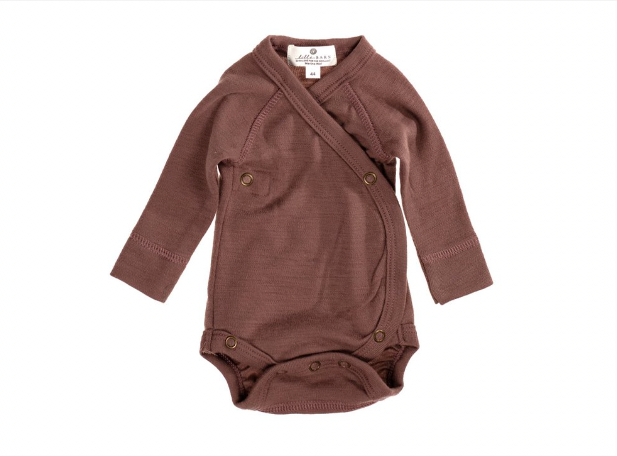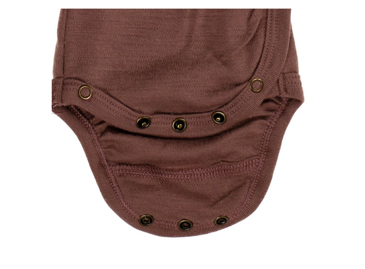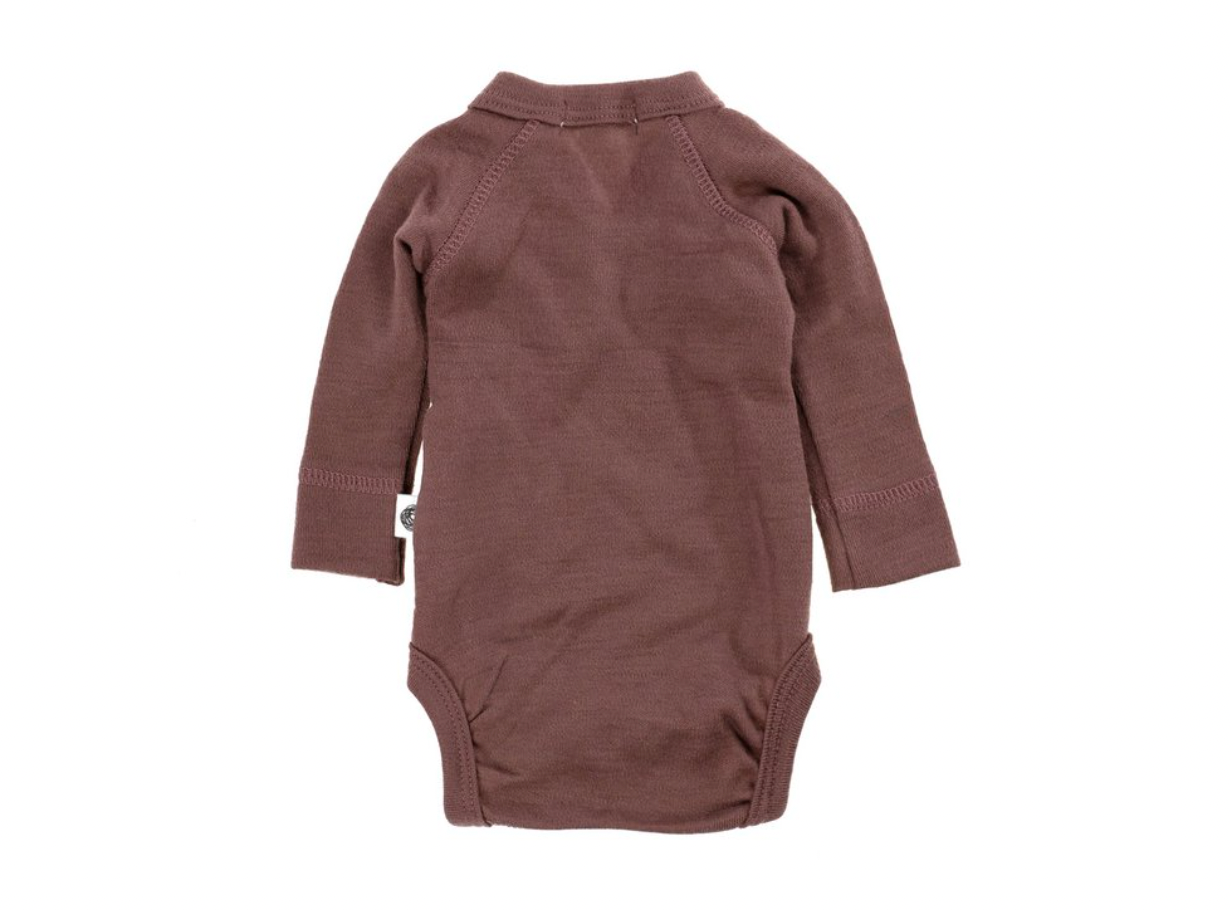 Een heerlijke overslagromper met lange mouwen in de kleur Twilight Mauve. De romper is gemaakt van 100% merinowol & duurzaam geproduceerd!