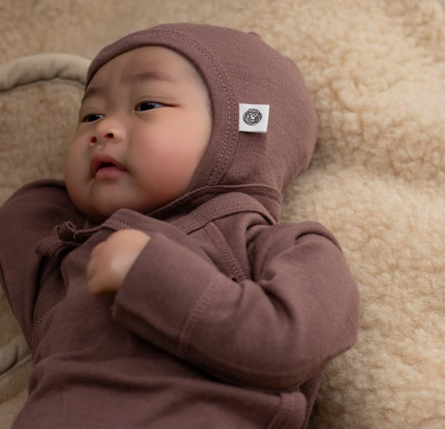 Een wollen strikmuts in de kleur Twilight Mauve. De strikmuts is gemaakt van 100% merinowol & duurzaam geproduceerd!
